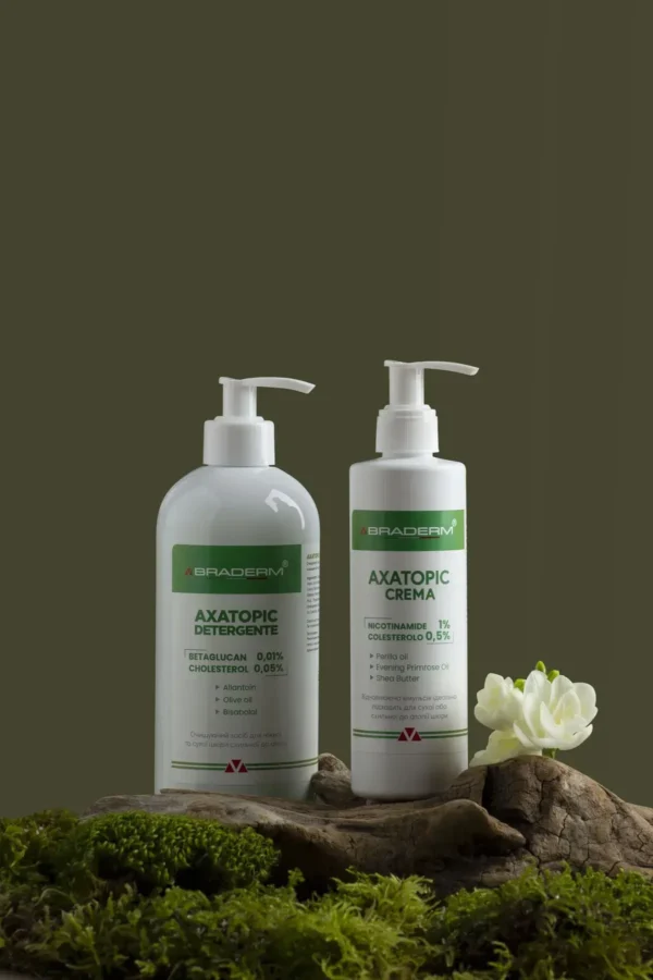 Braderm Axatopic Gel - це м’який очищувальний гель, розроблений для щоденного догляду за сухою, чутливою та атопічно схильною шкірою. Формула базується на делікатних неіонних та амфотерних очищувальних компонентах, які ефективно видаляють забруднення, не порушуючи ліпідний баланс і не провокуючи відчуття стягнення після вмивання.
