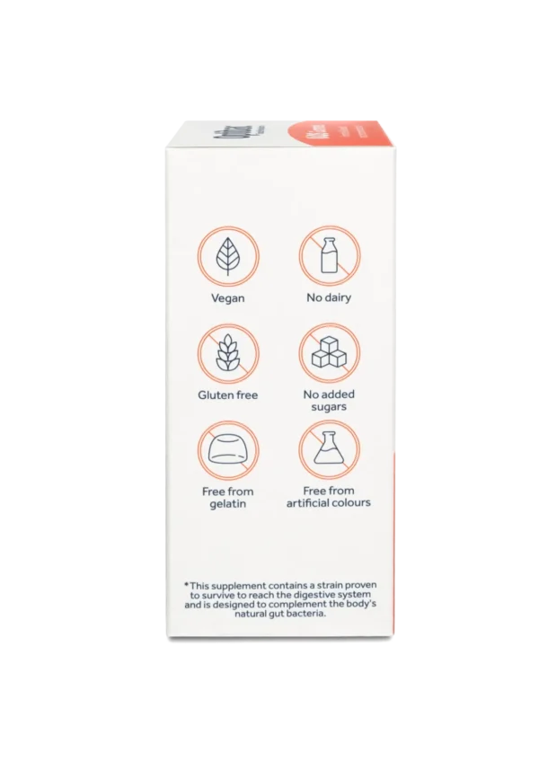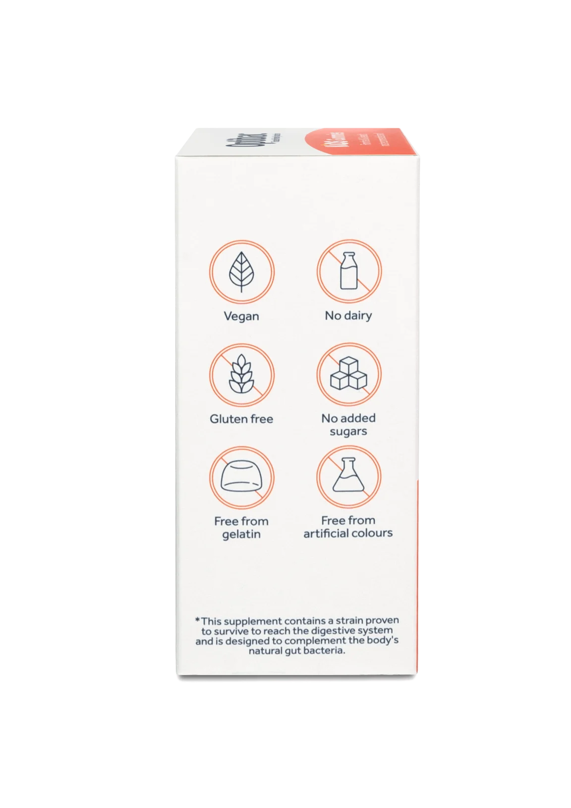 Концентрати фруктових соків/пюре (яблучний сік, яблучне пюре, полуничне пюре); Фруктоолігосахаридні волокна (FOS 0,55 г); трикальцій фосфат (кальцій 120 мг: 15% NRV); концентрат лимонного соку; пектин; концентрат соку чорної моркви; Натуральний ароматизатор; клітковина цитрусових; Живі культури: Bacillus coagulans Unique IS-2; Вітамін D3 (5 мкг: 200МО 100% NRV). Кожна гумка містить 2 мільярди корисних бактерій. Гарантія до закінчення терміну придатності. *Еталонне значення поживних речовин