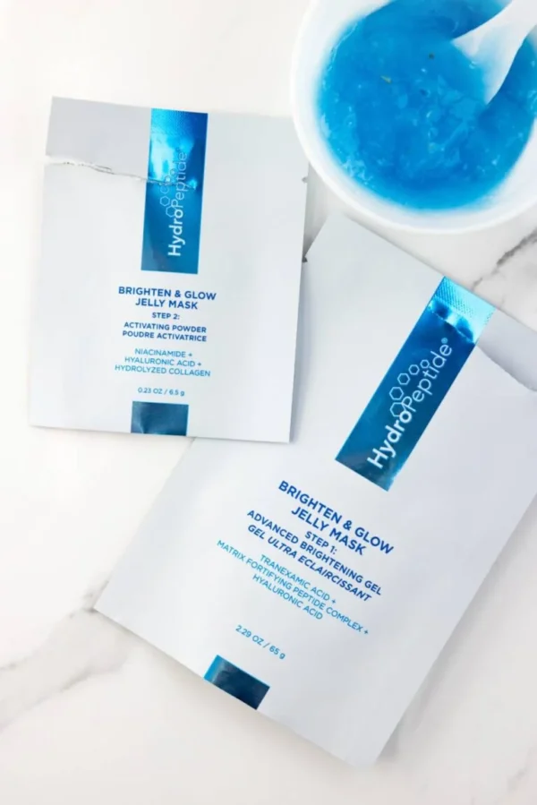 HydroPeptide Brighten & Glow Jelly Mask - це преміальна освітлювальна маска-плівка, створена для видимого вирівнювання тону, зменшення пігментації та надання шкірі сяйва. Її гелева текстура ніжно обволікає шкіру, забезпечуючи рівномірне проникнення активних компонентів та комфортне нанесення без липкості.