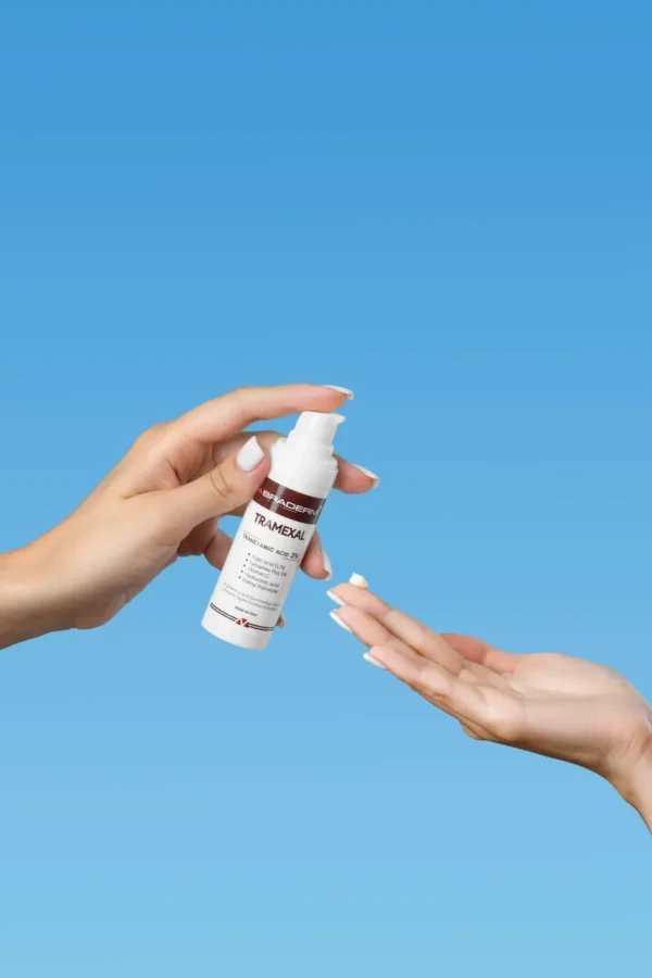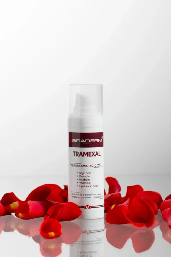 Braderm Tramexal Cream - це освітлююча емульсія з багаторівневою дією на пігментацію різного походження. Формула побудована на поєднанні транексамової кислоти, койєвої кислоти та фенілетилрезорцинолу активів, що працюють на різних етапах формування пігменту, допомагаючи зменшити інтенсивність темних плям і вирівняти тон шкіри без агресивного впливу.
