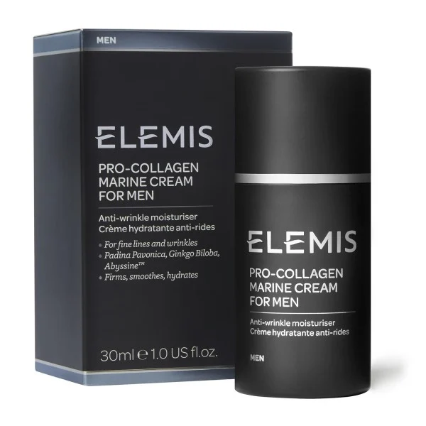 Elemis Men Pro‑Collagen Marine Cream - це преміальний щоденний крем для чоловічої шкіри, створений для глибокого зволоження, зміцнення структури та підтримки пружності, що особливо важливо після гоління чи тривалого впливу зовнішніх стресорів. Його формула поєднує морську силу водоростей з антиоксидантним захистом рослинних екстрактів, щоб стимулювати оптимальний рівень вологи, підвищити еластичність та зменшити видимість ознак старіння, таких як тонкі лінії та сухі ділянки.