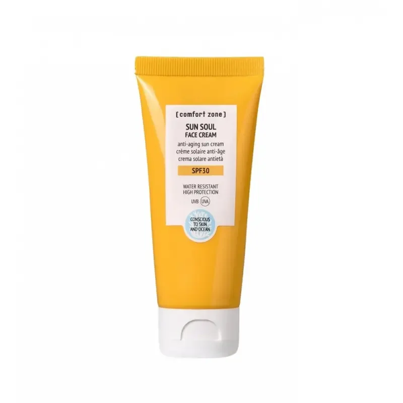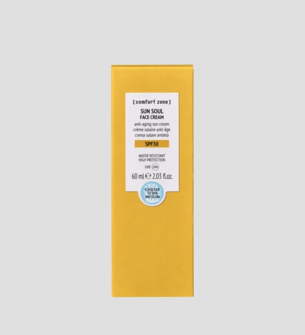 Sun Soul Face Cream SPF30 - це високоефективний крем для обличчя, який поєднує широкий спектр сонцезахисного захисту з інтенсивним доглядом та зволоженням. Він створює легкий невидимий бар’єр, що захищає шкіру від UVA/UVB-променів, запобігає фотостарінню та пігментації, одночасно живлячи і пом’якшуючи шкіру.
