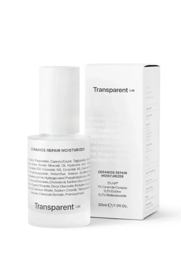 Ceramide Repair Moisturizer від TRANSPARENT LAB - ультразволожуюча сироватка для глибокого відновлення та збереження вологи у шкірі. Формула містить цераміди рослинного походження, які допомагають відновити гідроліпідний бар’єр та підтримати природний рівень зволоженості шкіри.