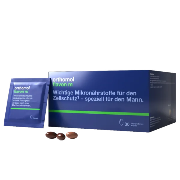 Після 30–35 років в організмі чоловіка починаються вікові зміни, які можуть негативно впливати на функцію передміхурової залози. Часто ці порушення тривалий час протікають безсимптомно та проявляються вже на пізніх стадіях. Orthomol Flavon M забезпечує організм необхідними мікронутрієнтами, що сприяють підтримці здоровʼя простати, гормонального балансу та репродуктивної функції.