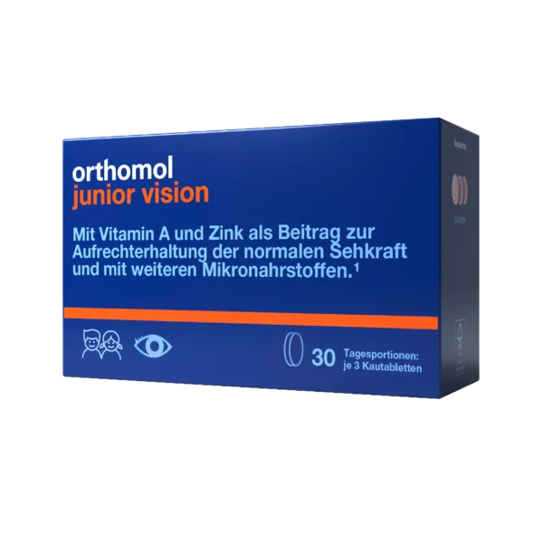 Orthomol Junior Vision (Ортомол Джуніор Віжн) – німецький вітамінно-мінеральний комплекс для підтримки здоров’я очей дітей віком від 4 до 14 років. Продукт створений для захисту зорової системи в умовах сучасного цифрового навантаження – тривалого використання смартфонів, планшетів та комп’ютерів, що часто призводить до цифрового стресу очей і потенційного погіршення зору в довгостроковій перспективі.